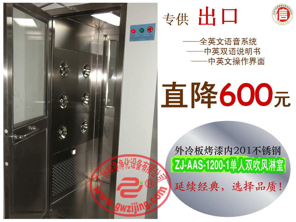 出口風淋室價格直降600元,標準配置、專供出口海外!
