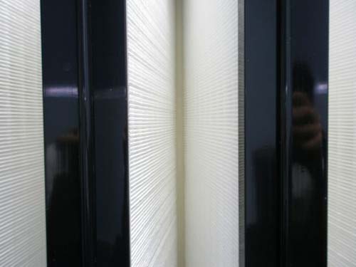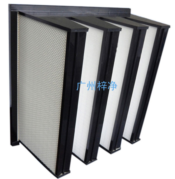 此處過(guò)濾器的效率規(guī)格一般為全部都是有隔板結(jié)構(gòu),褶距約8mm的玻璃纖維濾紙由瓦楞狀的鋁箔隔開(kāi)。由于要耐高溫,濾紙與過(guò)濾器金屬外框間的粘合與密封問(wèn)題是關(guān)鍵,密封結(jié)構(gòu)要可靠,密封材料的成本又不能太高。