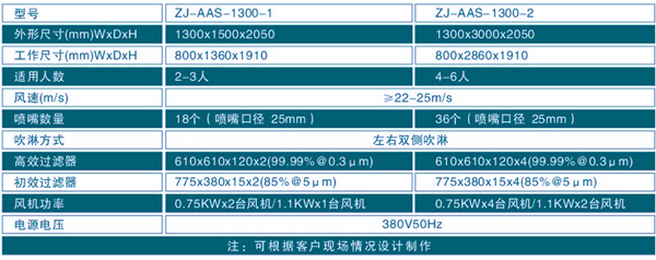 (注:標準風淋通道尺寸以1000mm為單位可加深加寬,ZJ-AAS-1300、ZJ-AAS-1590選型可參考以上示例)