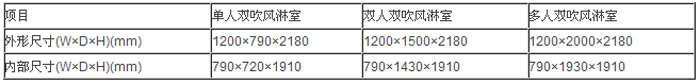 1200風(fēng)淋室標(biāo)準(zhǔn)尺寸技術(shù)參數(shù):
