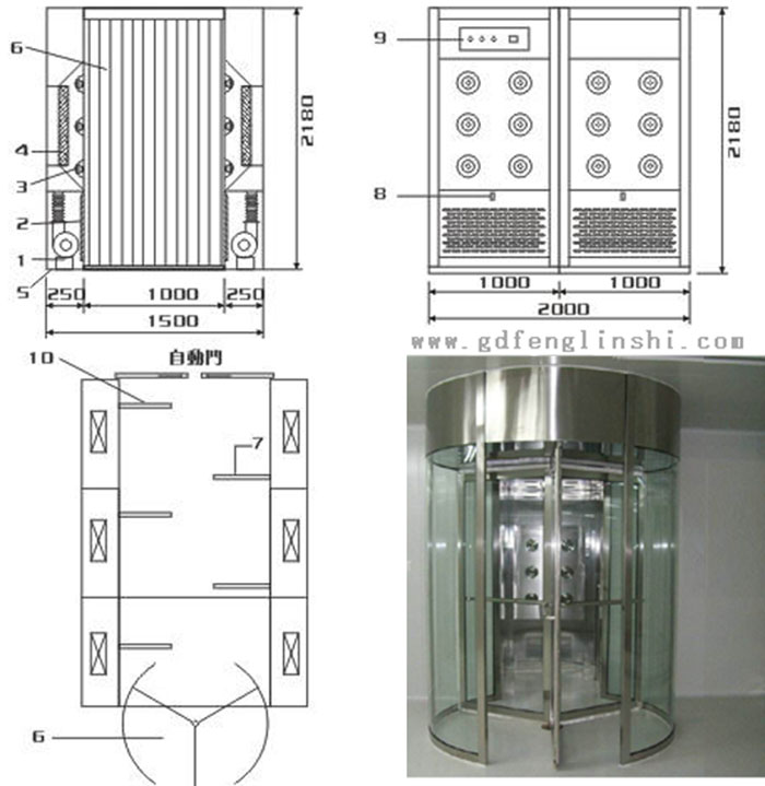 三、旋轉(zhuǎn)門(mén)風(fēng)淋室部件結(jié)構(gòu)組成: