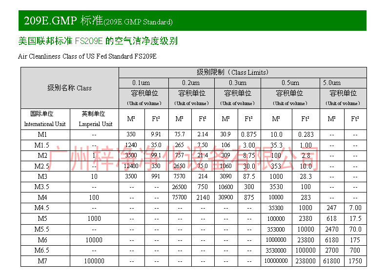 美國聯(lián)邦標(biāo)準(zhǔn)FS209E的空氣潔凈度級別出處:廣州梓凈凈化設(shè)備有限公司 官方網(wǎng)站http://www.shpengrui.com/