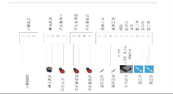 c.風(fēng)淋室紅外感應(yīng)開關(guān):無源觸點(diǎn)(絲印標(biāo)記為紅外)