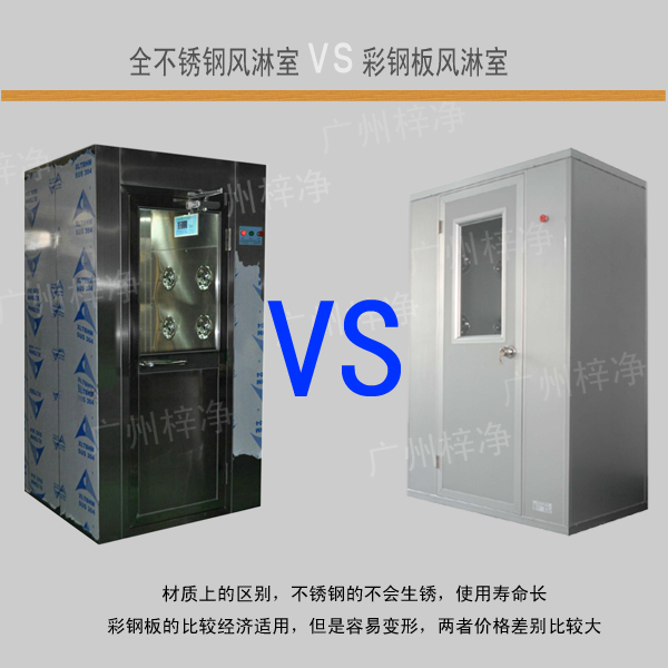 材質(zhì)上的區(qū)別,304不銹鋼是不會生銹,使用壽命長,彩鋼板的比較經(jīng)濟(jì)適用,但是容易變形,兩者價格差別比較大,看你們公司使用情況和要求。預(yù)算足夠的話還是建議用不銹鋼的,畢竟風(fēng)淋室更換起來也比較麻煩。