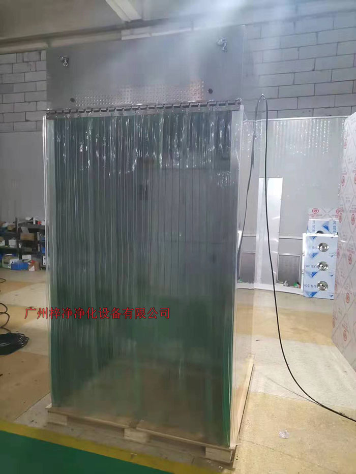 2、工作區(qū)兩側(cè)為不銹鋼擋板,前后為條形防靜電防塵垂簾,達到理想防塵效果;