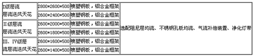 潔凈送風(fēng)天花送風(fēng)面尺寸≥2600×2400≥2600×1800≥2600×1400;
