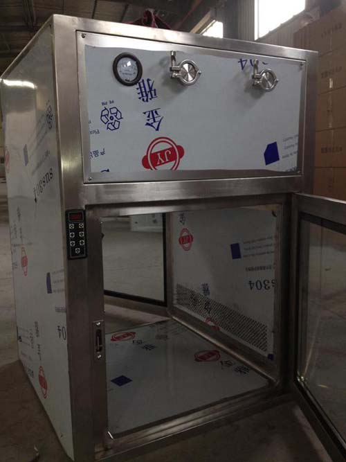 風(fēng)淋式傳遞窗/自凈式傳遞窗是根據(jù)風(fēng)淋室的型式設(shè)計而成,風(fēng)機迅速的將氣吹出經(jīng)過高效過濾器變成潔凈的空氣,潔凈的空氣由不銹鋼噴淋頭、嘴噴射出后氣流速度高達20M/S以上,可能性效地迅速清除物體表面附著的塵埃粒子。循環(huán)風(fēng)后經(jīng)過初效過濾器雙重過濾凈化效果顯著,使用性強。